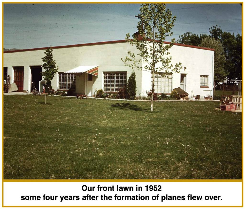 One of those formations of planes is one of my earliest memories. Perhaps I was three. It was a warm afternoon and my two sisters and I were on the lawn being watched over by our mother. We were sitting in the grass when a distant rumble grew to a deep, droning roar and the clear sky became thick with planes, all flying a fixed distance from one another, their four mighty engines powering propellers that pulled them forward. Behind each hard working engine dark trails of smoke blended together to turn the sky gray. It took some ten minutes for them all to pass.