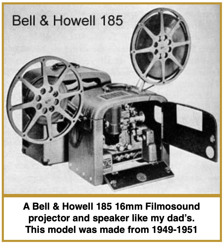 A note to start: My thanks to Paul of Paul’s 16mm Film Collecting Pages for the photograph of a Bell & Howell 185 advertisement photo. For an education in 16mm films or to have some fun checking out equipment and titles, click on his site. What a great resource!
